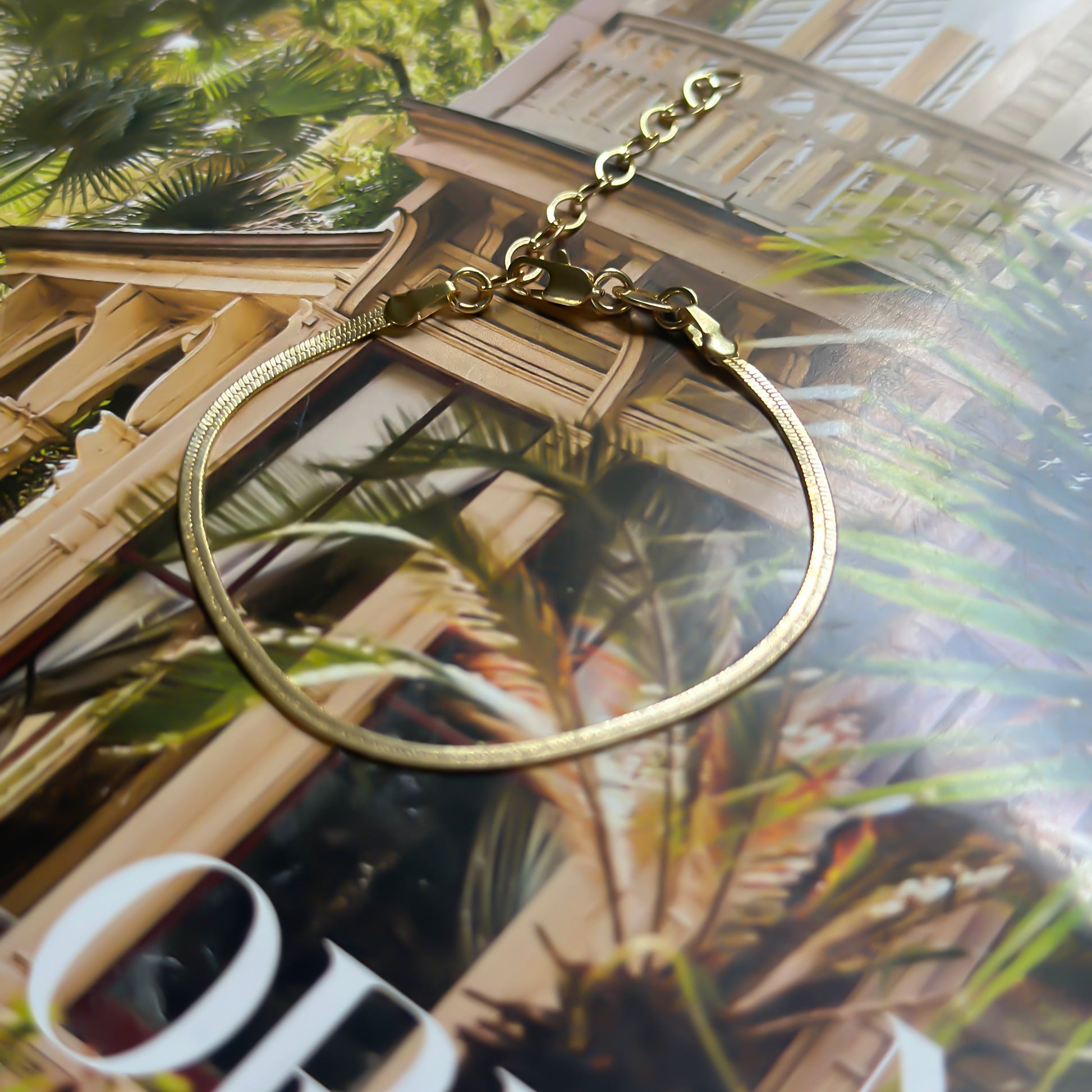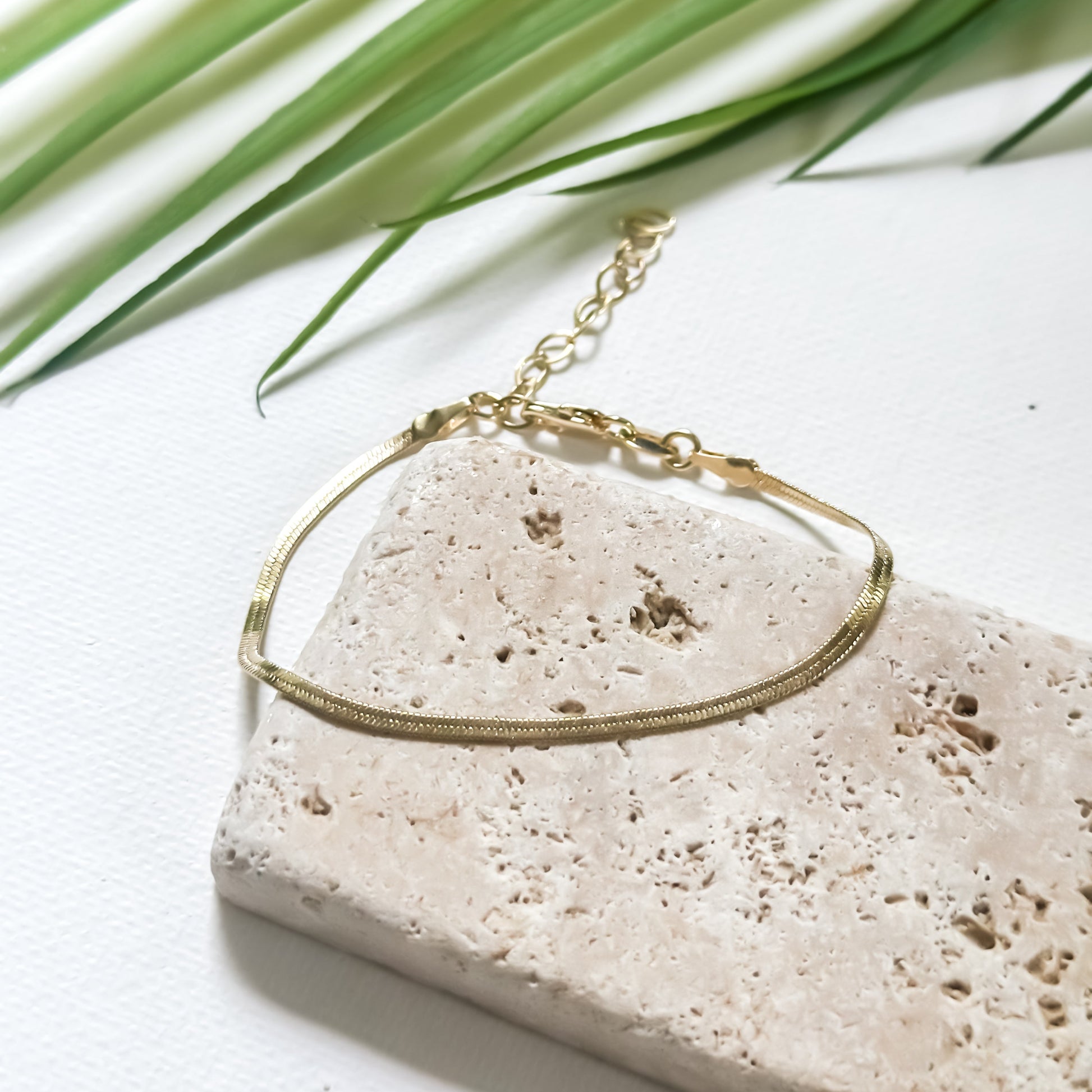 Smooth, sun-kissed, and endlessly wearable—the Tulum Bracelet is your daily dose of glow. Crafted with a sleek snake chain in gold-filled shine, it’s the perfect match to the Tulum Necklace and layers beautifully with everything.