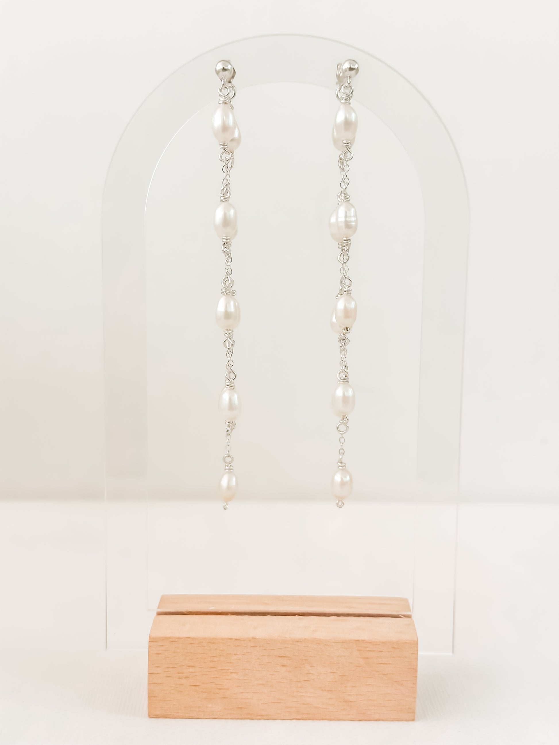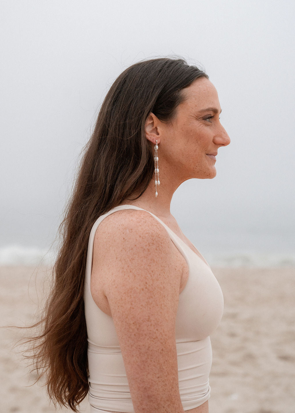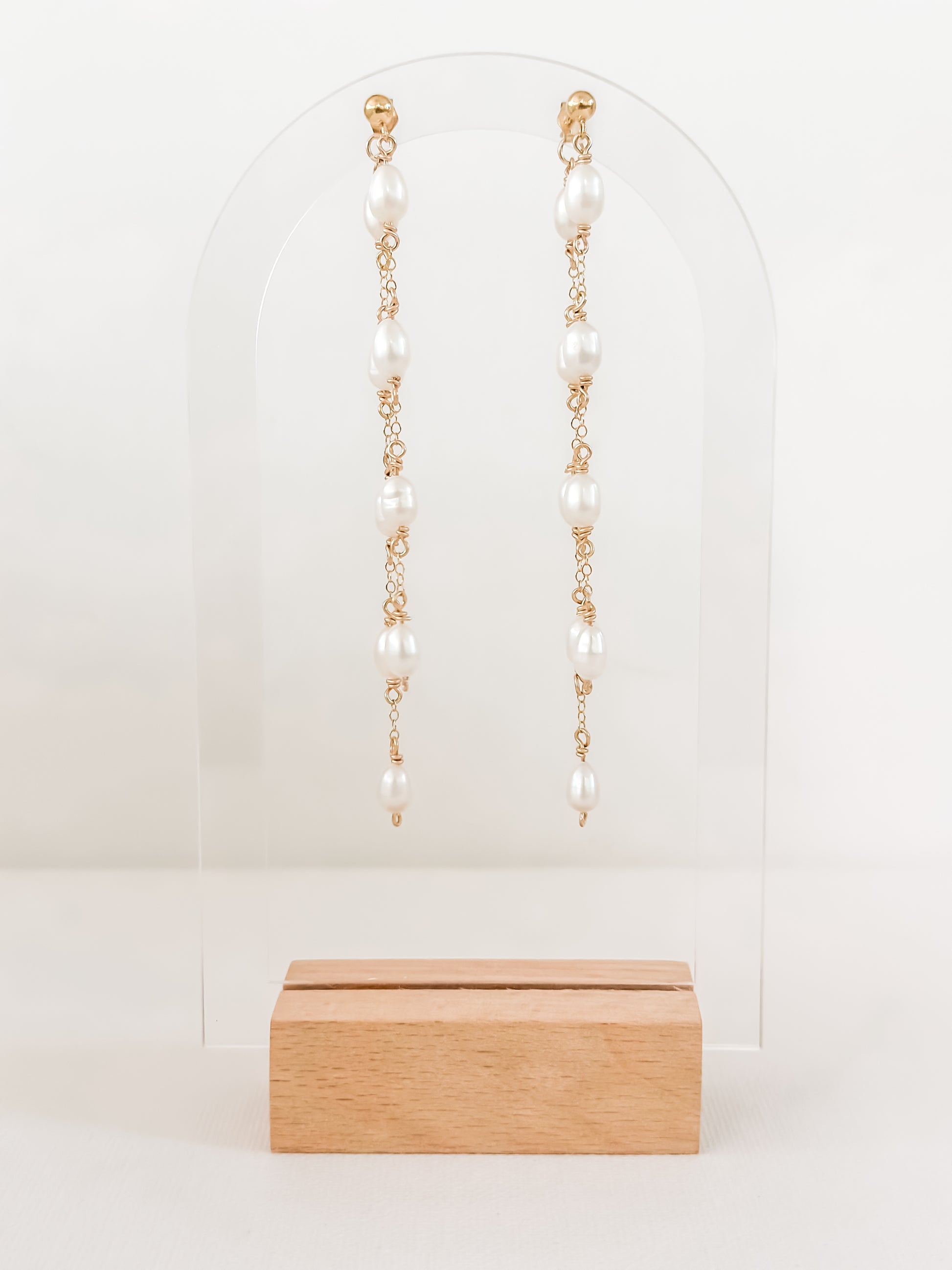 Elegant and flowing, the Miramar Earrings feature strands of natural freshwater pearls cascading from delicate chains. Inspired by ocean views and soft light, they bring a romantic, graceful finish to any look. Available in gold-filled or sterling silver.