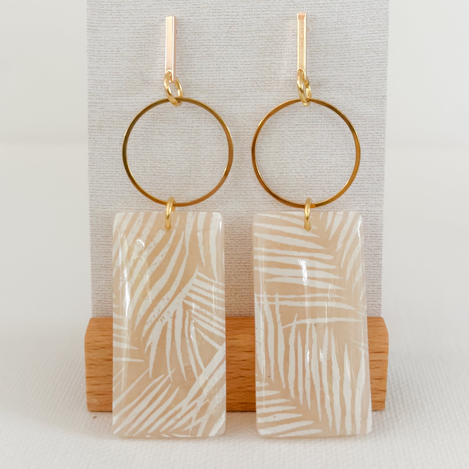 Inspired by breezy palms and sun-drenched escapes, the Paloma Earrings pair etched botanical texture with a soft glossy finish and gold accents. Lightweight and full of movement, they are the perfect balance of relaxed and refined.