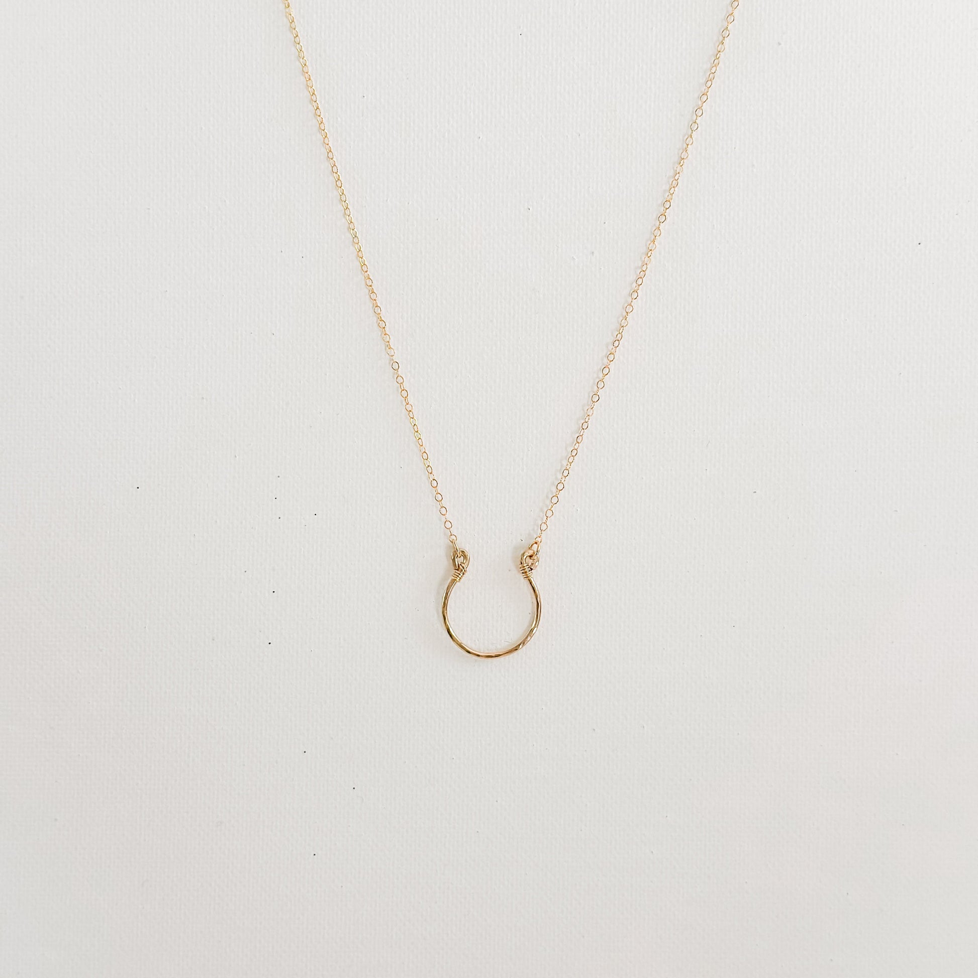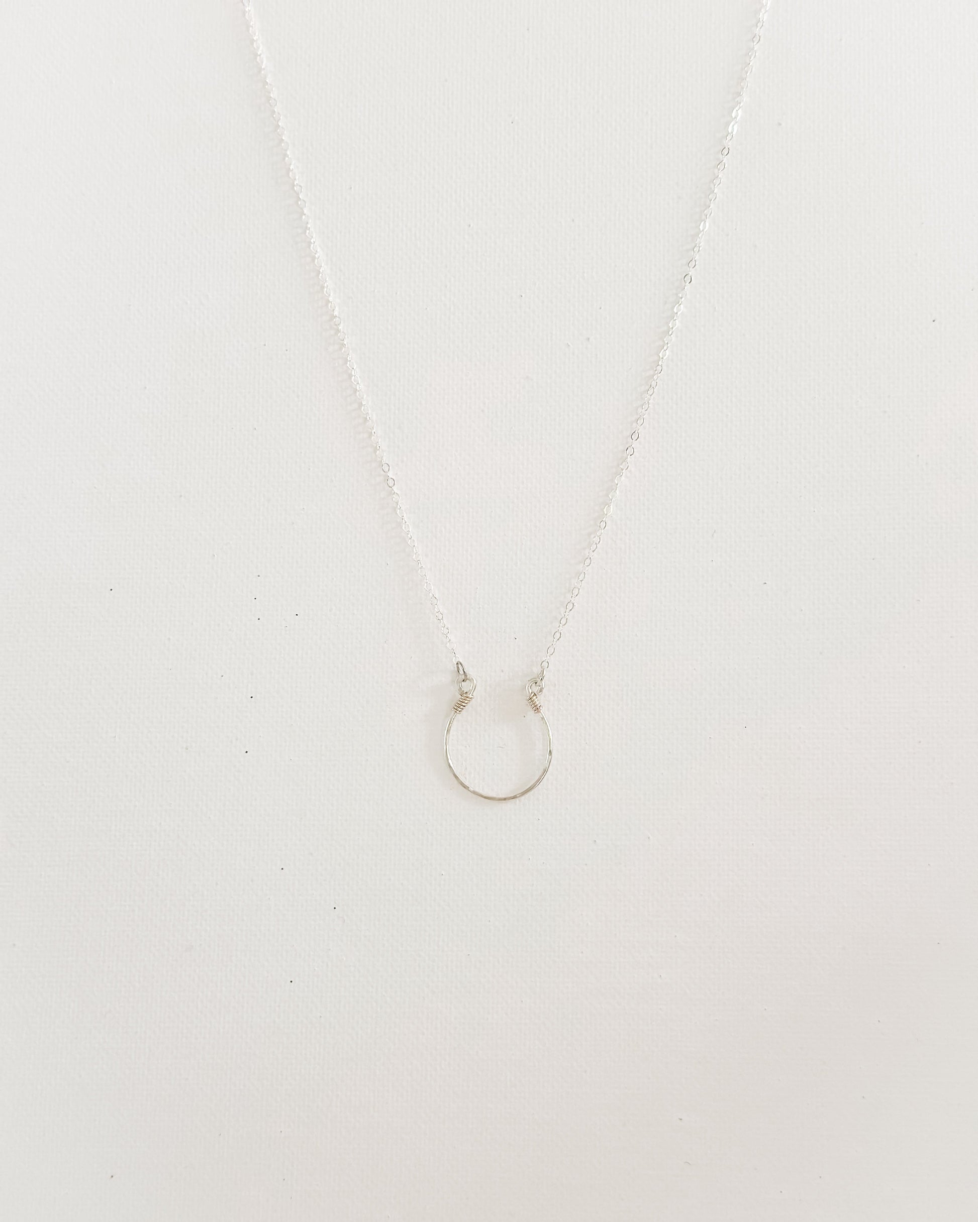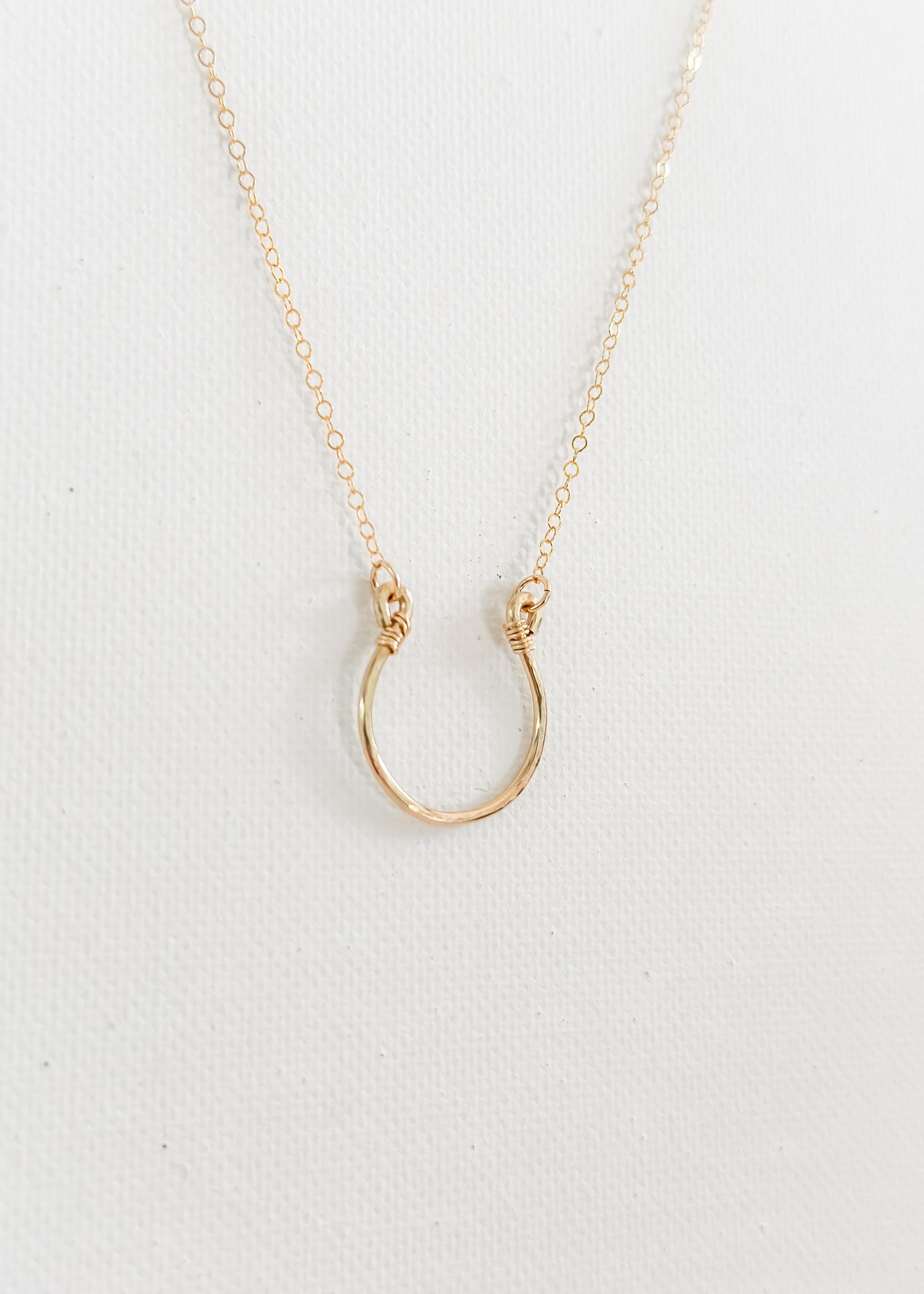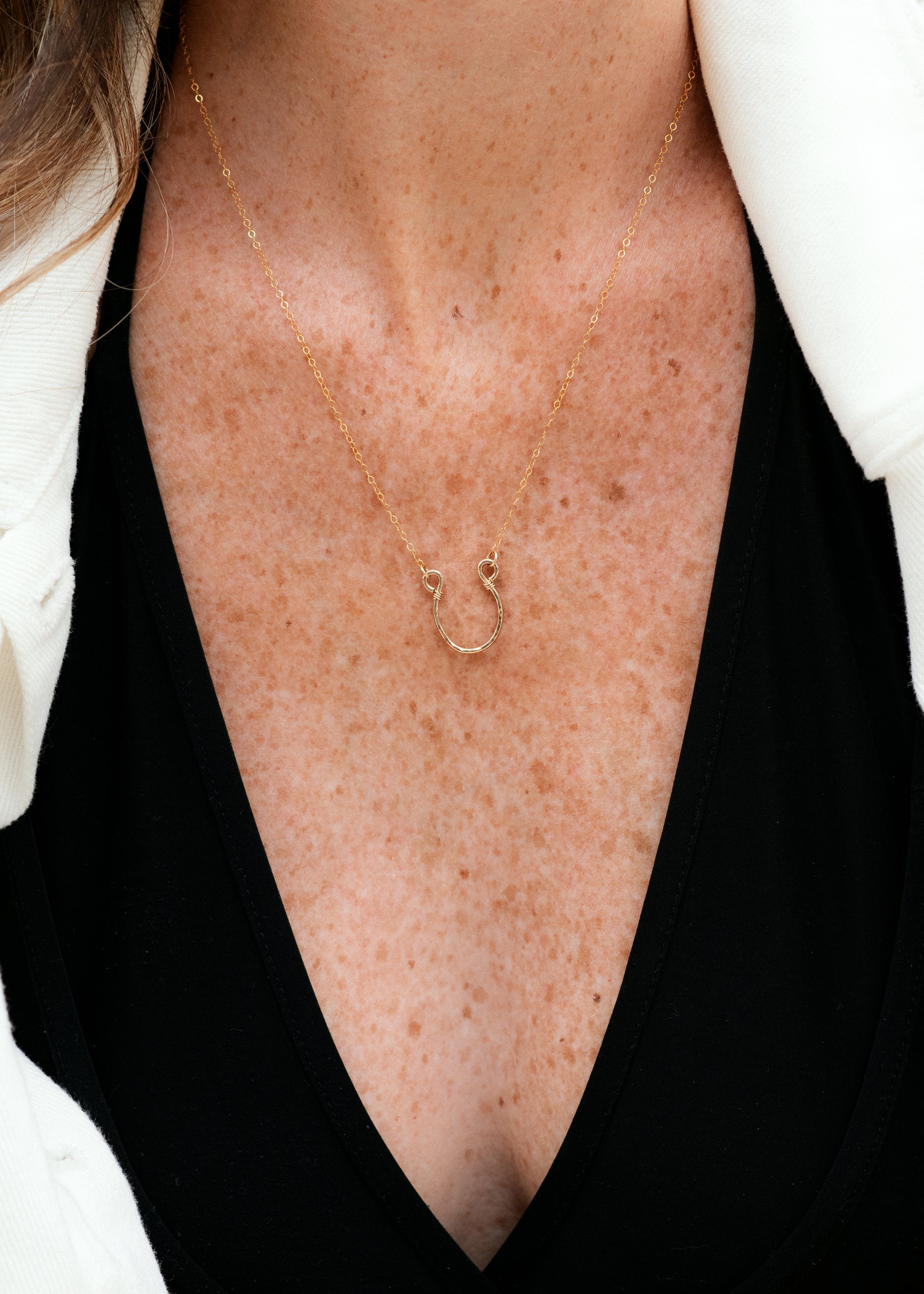 A modern take on a western classic. The Saddle Necklace features a dainty handmade horseshoe charm — a symbol of luck — that layers seamlessly with your favorite pieces or stands out on its own.