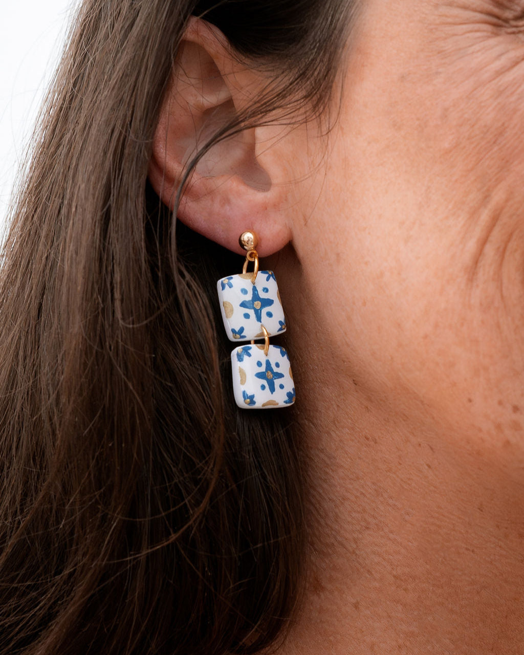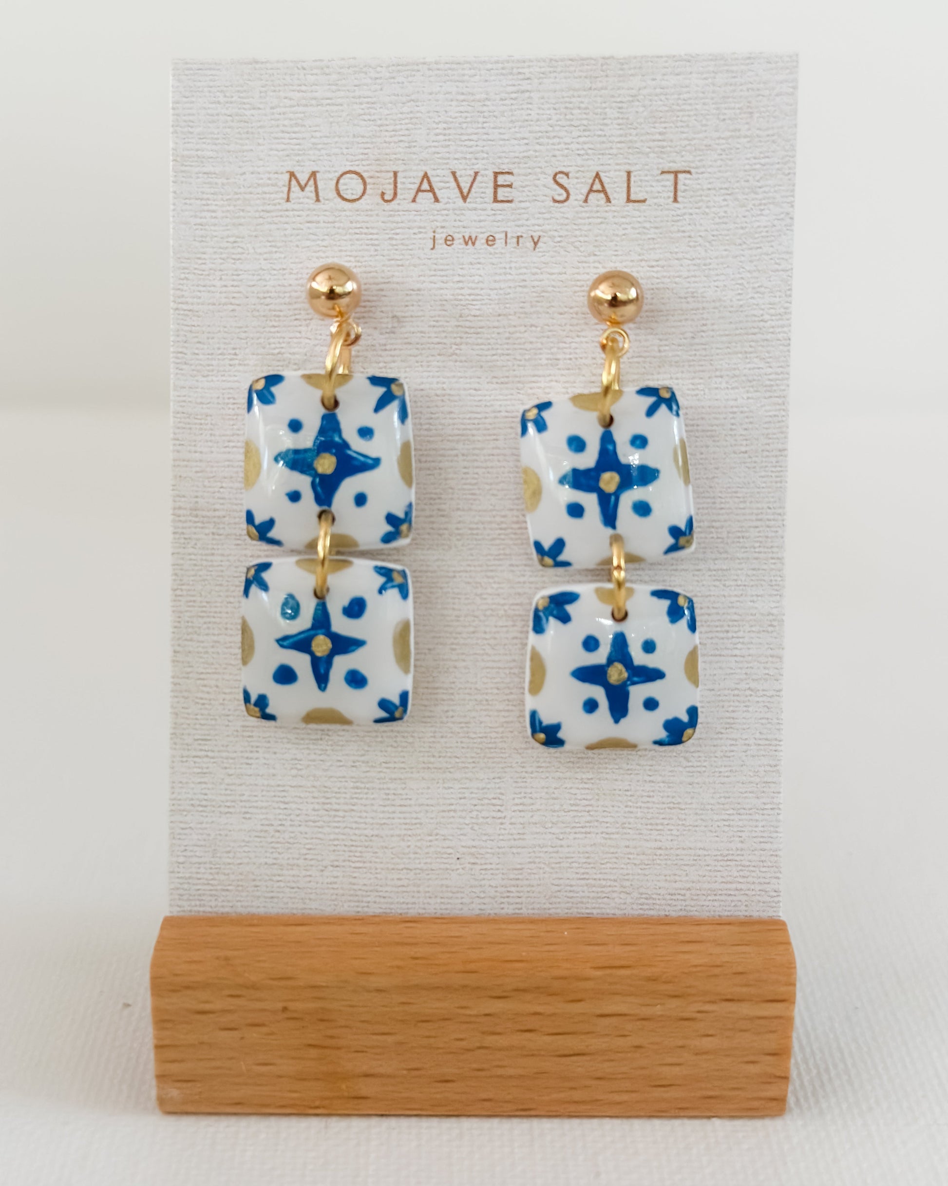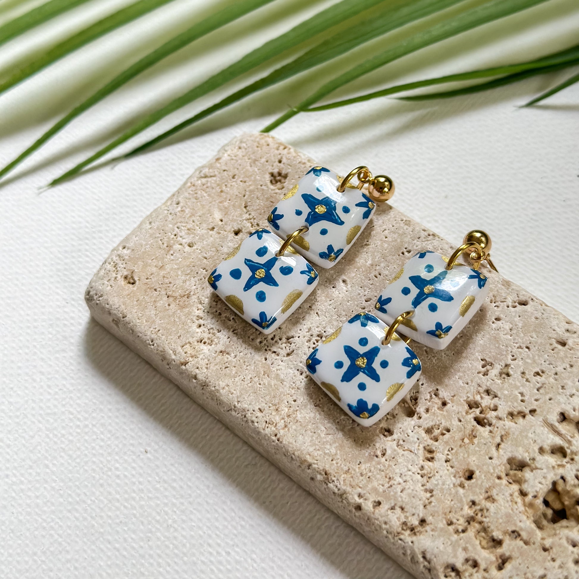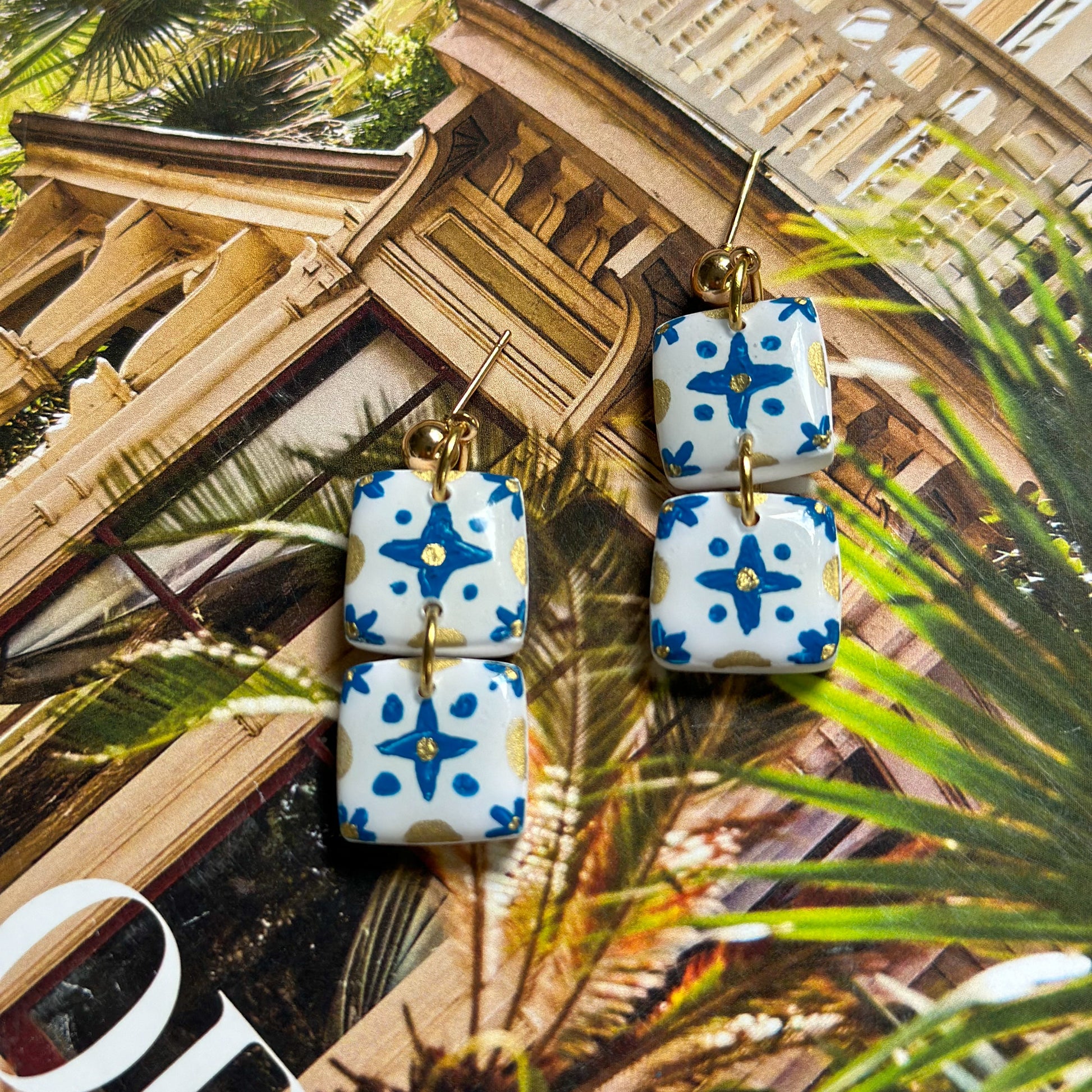 Inspired by traditional tile work and the golden hues of Portugal’s southern coast, the Algarve Earrings are a vibrant celebration of sun, color, and craft. With hand-detailed blue and gold patterning, these lightweight, beauties are a wearable getaway.